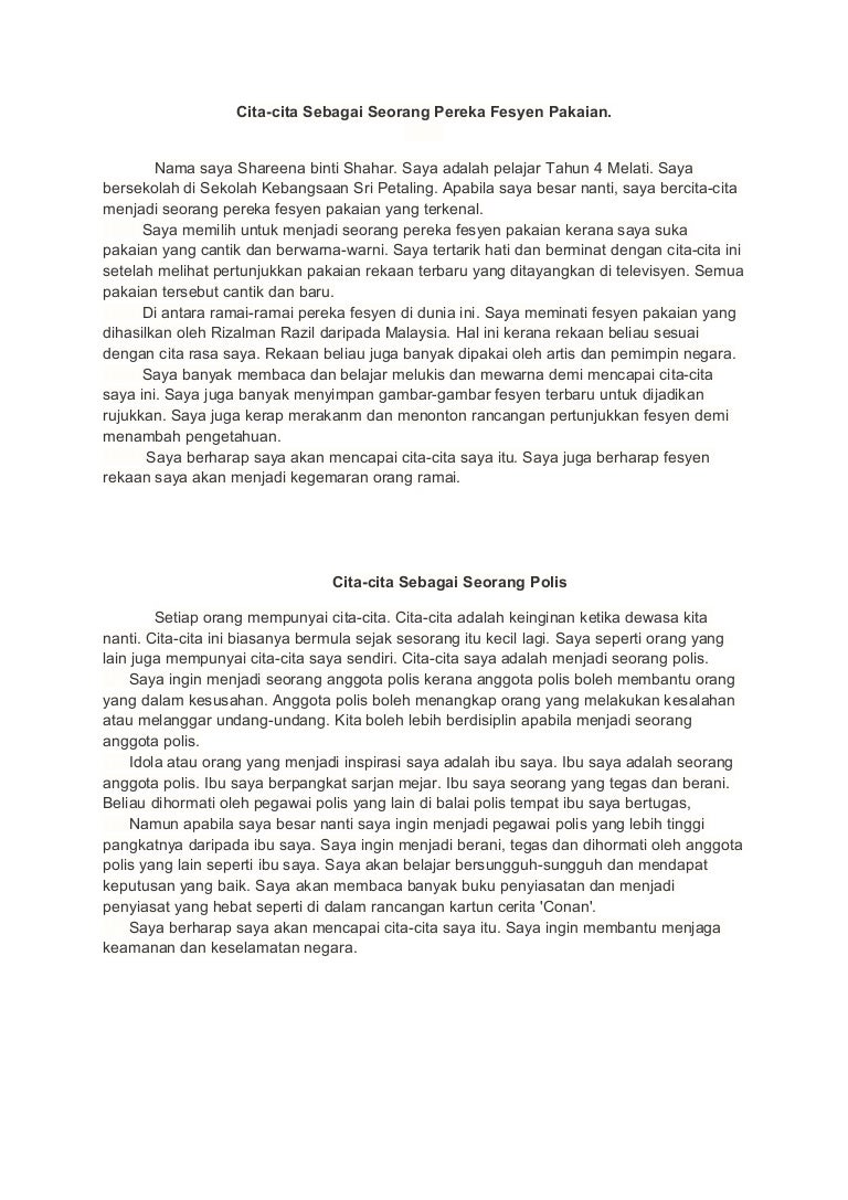 Flipsnack can also be used as. Saya yakin suatu hari nanti cita-cita saya pasti tercapai. Saya ingin menjadi seorang anggota polis kerana.